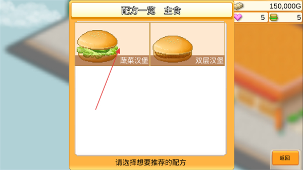 3、在配方界面,选择素食的蔬菜汉堡或者全是肉的双层汉堡进行推荐。