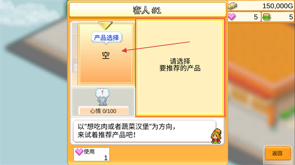 1、游戏开局需要确定店铺的汉堡种类,点击路过的客人进行询问。