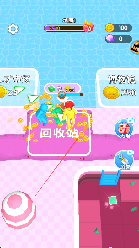 4、在回收站出售物品获取金币如获得100金币,积累金币解锁新区域和层级。