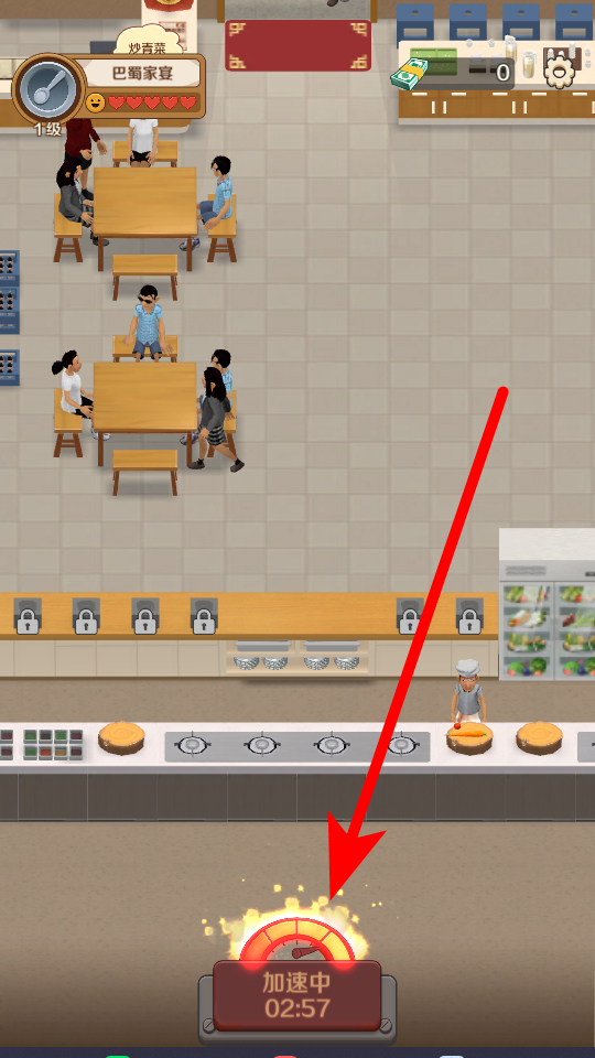 2、开业后,会有顾客到店用餐,能使用加速功能,减少菜品制作等流程的时间,提升经营效率,让店铺运转更顺畅。