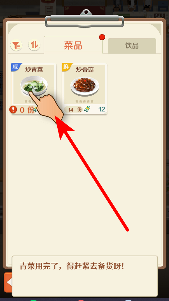 3、随着经营,菜品原材料会消耗,比如炒青菜的青菜用完了,就需要去备货,保证菜品能正常供应给顾客。