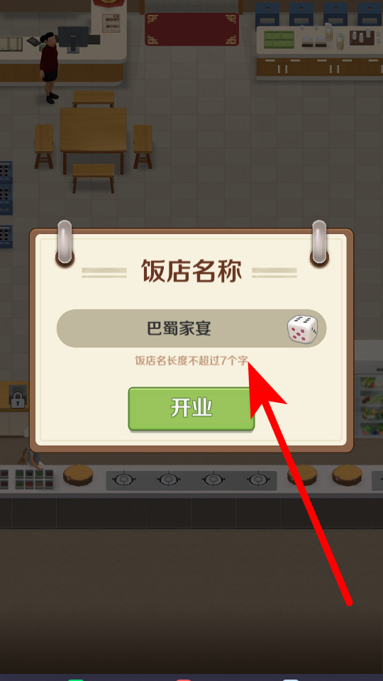 1、开局要给火锅店取名字,像示例里取巴蜀家宴,确认后就能开业,开启经营之旅。
