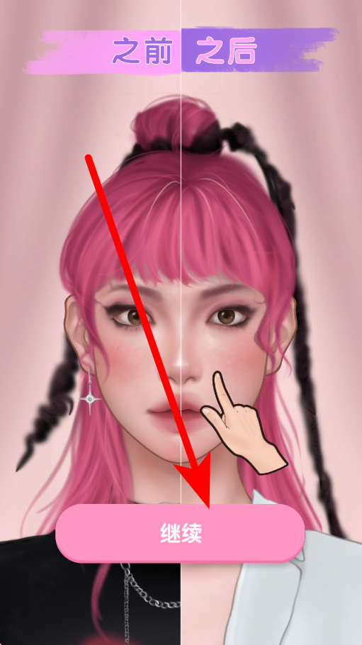 4、美美拍照在完成前面的摘除卸妆摘首饰等操作后,进行拍照,记录下当前的形象,然后点击继续,推进美妆模拟的后续流程。