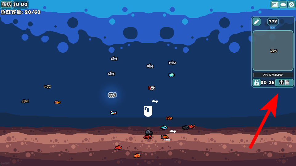 4、当鱼儿长成成年鱼后,可点击出售按钮,将成年鱼卖出,获取收益,这些收益可用于购买更多鱼苗或升级养殖相关的设施等。