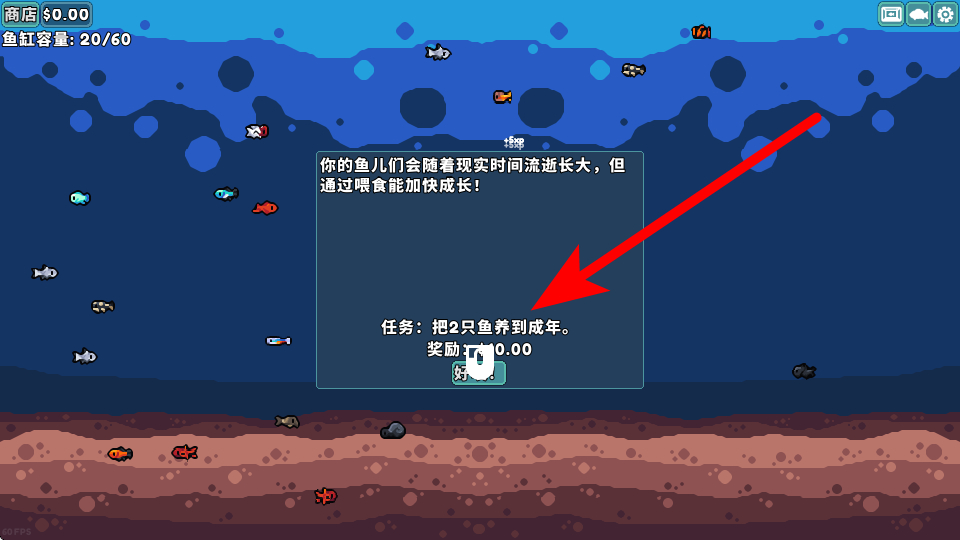 3、游戏中会出现养殖任务,比如把2只鱼养到成年,玩家要按照任务要求,精心养殖鱼儿,待完成任务后,能获得相应的奖励,助力后续养殖。