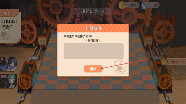 4、当弹出回合结束弹窗后,查看本轮获得的收益信息,点击确认按钮即可进入下一轮经营流程。