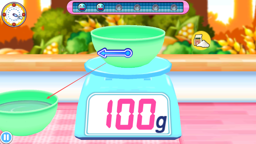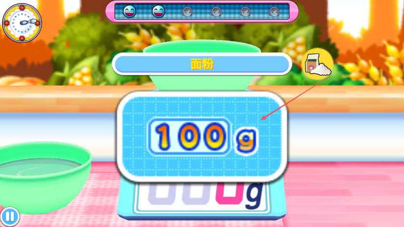 3、看到面粉标识后调整秤上的面粉量至100g。