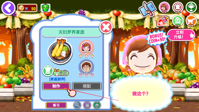 1、进入游戏看到天妇罗荞麦面点击制作按钮开始制作料理。