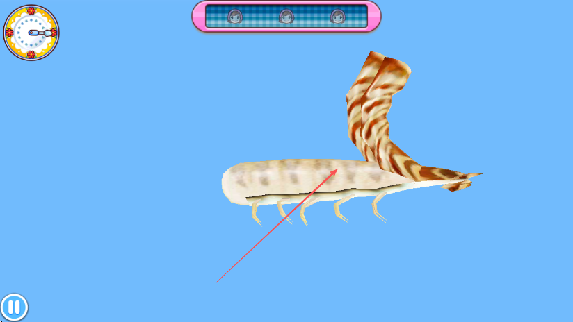 2、按要求处理食材比如对虾进行操作,按游戏指引完成前期准备。