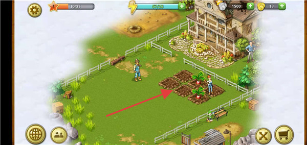 3、在清理后的土地上进行种植操作如种植萝卜,完成农作物的培育布局,提升农场产出。