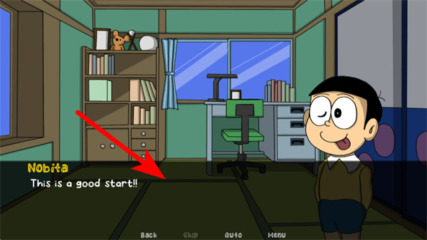1、进入游戏界面后,点击剧情互动区域开启故事流程,这是进入游戏的关键操作,才能推进哆啦A梦的剧情环节。