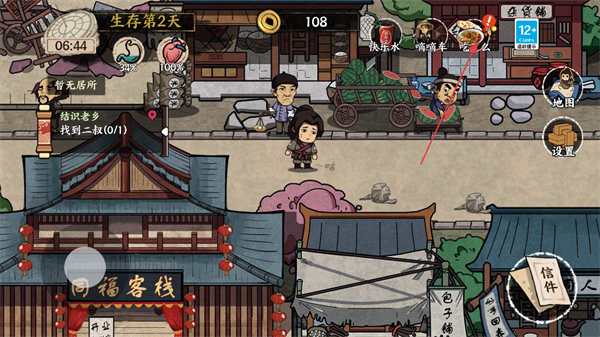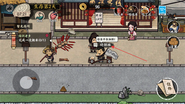 1、在长安城内寻找食物类型的商贩摊,点击对话条与摊主进行对话购买食物。