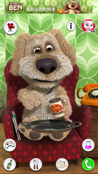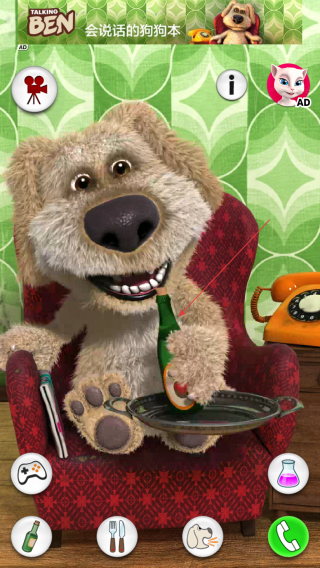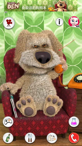 4、点击电话图标,狗狗本会拿起电话,模拟打电话的情景。