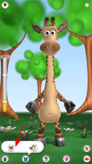 2、点击带有饮品图标的按钮,可给长颈鹿提供饮品,满足其饮水需求,这是照顾长颈鹿的基础操作。