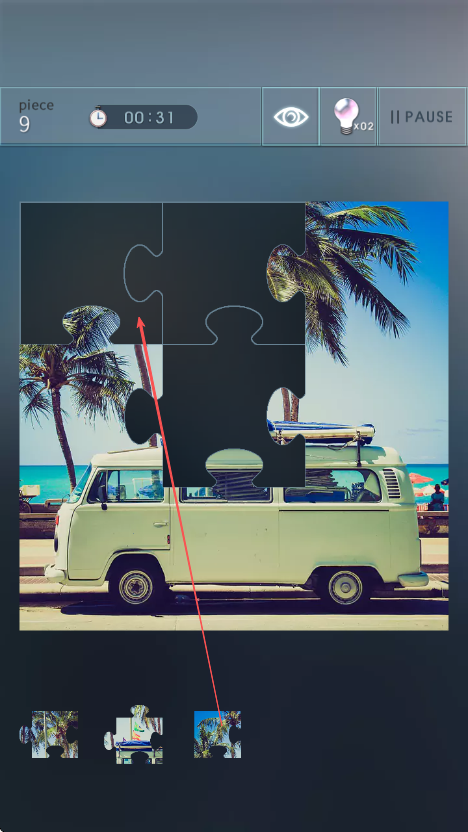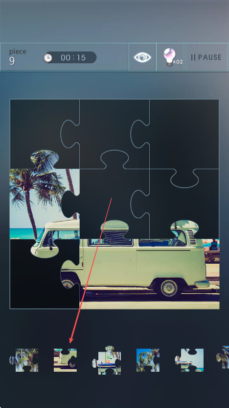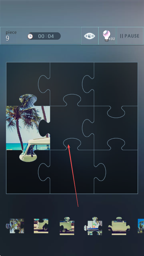1、进入游戏查看piece9和计时表,从下方拼图块中找出边缘明显的块,拖到拼图板对应位置。