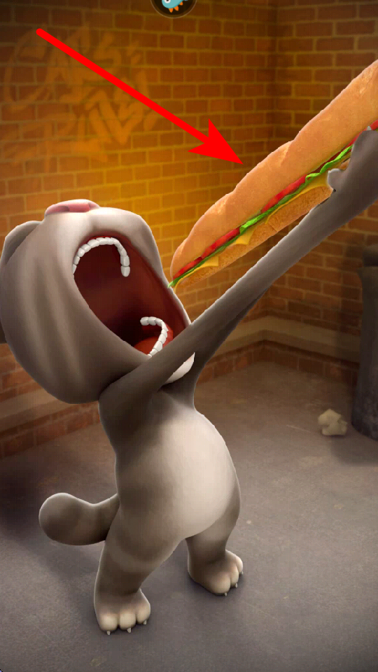 4、点击左侧爪子图标,可对汤姆猫进行逗弄,它会做出各种可爱反应,比如抖动身体、做出搞怪表情等,为玩家带来轻松愉快的互动体验。
