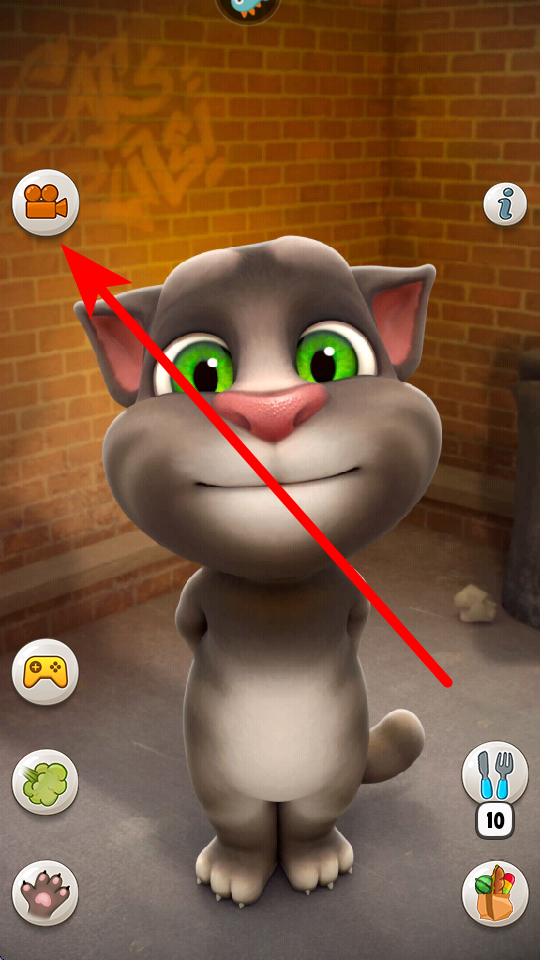 2、点击左上方摄像机图标,可录制和汤姆猫的互动过程,把有趣的对话、动作等记录下来,方便之后回顾或分享给他人,留存欢乐瞬间。