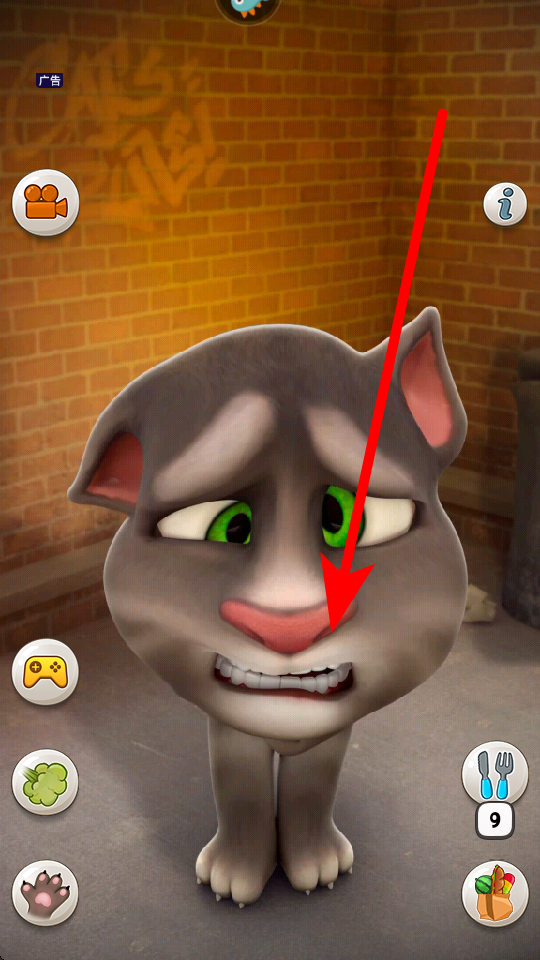 1、点击汤姆猫,和汤姆猫一起互动,比如点汤姆的肚子,它会捂住肚子,点击汤姆猫的头它会摔倒。