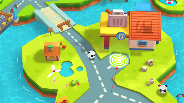 3、通过滑动屏幕任意空白区域唤出移动键控制熊猫宝宝的前进。