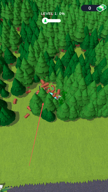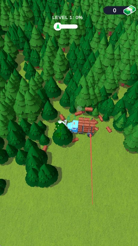 1、进入游戏,操控蓝色伐木车进入森林区域。