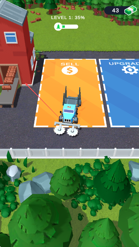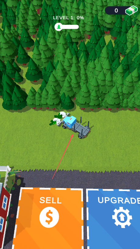 4、将装满木材的伐木车开到标有SELL的橙色区域,出售木材获取收益。