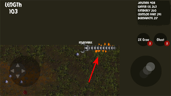 2、靠近场景中的小型蜈蚣时,控制你的蜈蚣与其接触,可吞噬对方来增长自身长度,提升你的LENGTH数值。