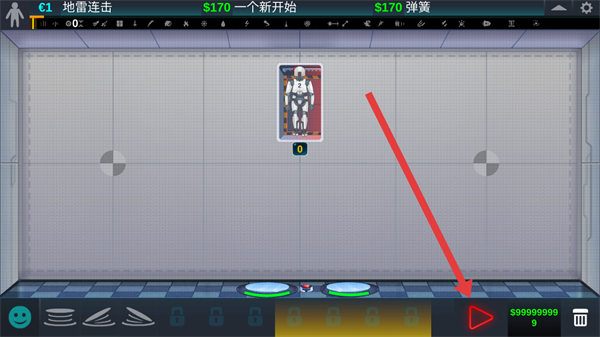 3、点击右下角的红色三角形开始按钮,启动测试流程,使机器人触发弹簧并被弹起。