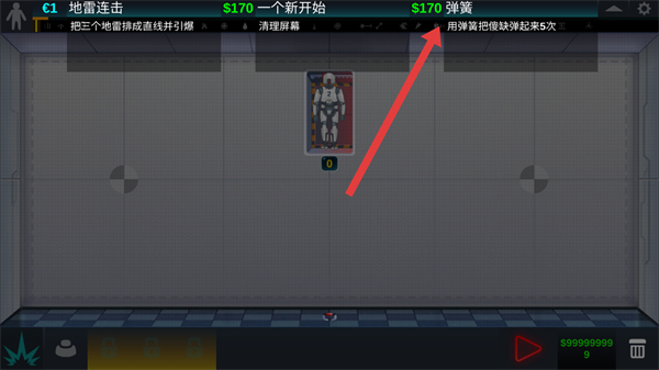 1、查看顶部任务提示“用弹簧把傻缺弹起来5次”,明确当前任务目标。