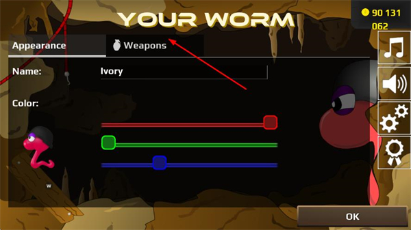 2、在自定义游戏页面点击Your worm,进入虫虫设置页面。