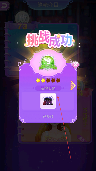 4、挑战成功后获取妆容奖励,推进游戏进程。