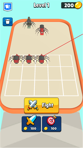 3、进入合成界面,将相同小火车合成升级,点击Fight按钮,让小火车与敌方战斗。