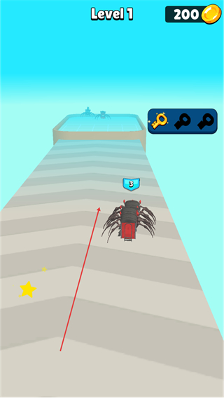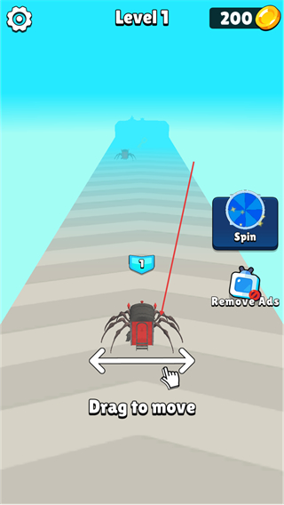 1、在Level1中,拖动Dragtomove控制蜘蛛形态小火车左右移动,收集物品,推进关卡。