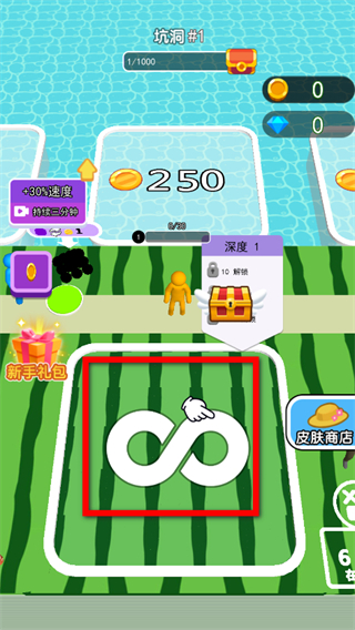 1、在我挖矿真溜游戏界面,点击带有无限符号的区域,开始挖矿操作。