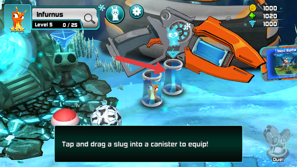 4、在装备的界面,按照提示将slug拖入容器中进行相关的装备,提升了角色的战斗的能力。