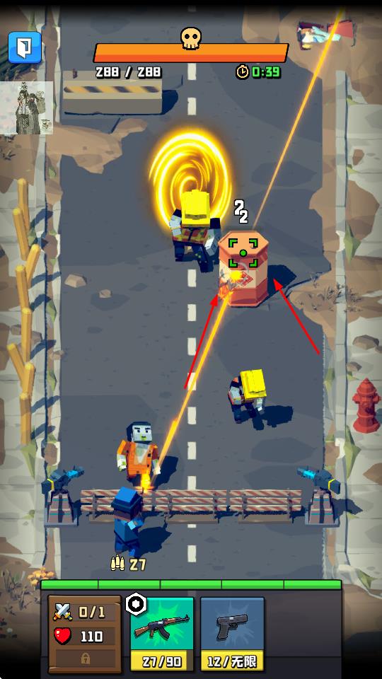 1、瞄准射击突围战斗:操控角色瞄准涌来的敌人进行射击,根据敌人类型选择合适武器,近战敌人快速闪避后反击,远程敌人利用地形掩护压制,在密集攻击中寻找突围机会。