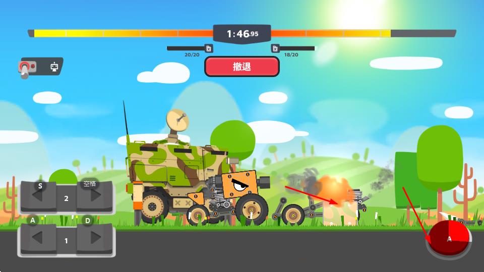 3、在战斗场景中,通过按键操控机械车辆移动,与敌方机械展开战斗,若需调整可选择撤退操作。