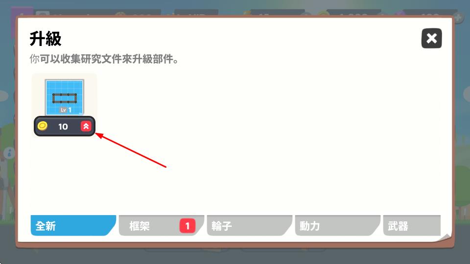 2、进入升级界面,收集研究文件或花费金币升级部件,提升机械车辆的性能,增强战斗能力。