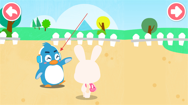 4、出门在外,我们需要学习见到朋友主动打招呼,或是朋友打招呼时一定要做出回应,点击企鹅宝宝来打招呼。