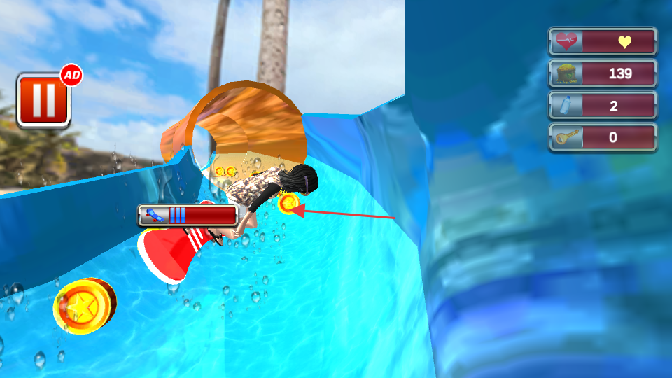 3、道具运用与乐园创建:挑战关卡时合理使用收集的道具提升表现,通关后积累资源与经验,利用创新蓝图与建造功能设计水滑梯,逐步完善属于自己水上乐园。