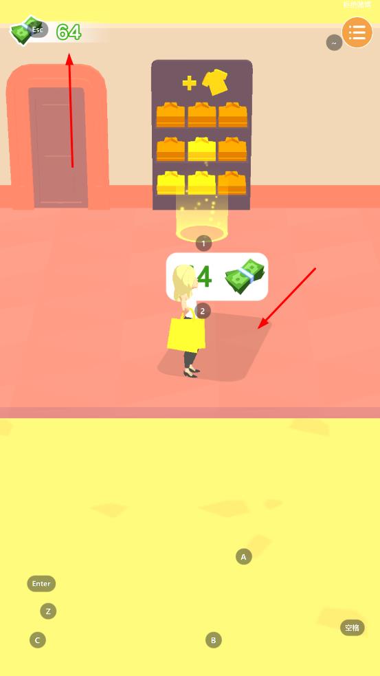 2、收集衣物后,前往收银台区域,与收银员交互完成结算,获取金币奖励,提升界面上方的金币数值。
