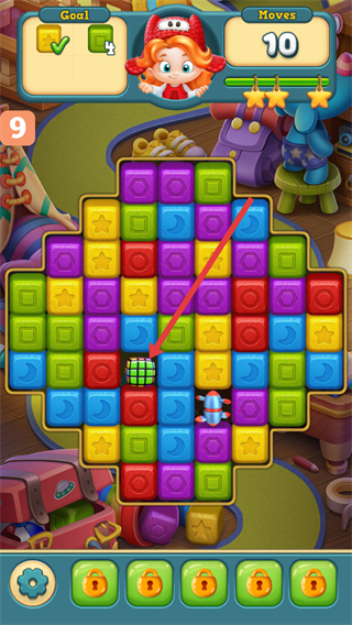 核心玩法为点击消除两个及以上相同玩具方块,规则简单易懂,操作仅需点击滑动,没有复杂技巧,同时需达成指定消除数量,兼具休闲性与目标感。