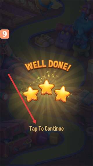 4、完成关卡目标后,会显示通关奖励,点击Tap To Continue。