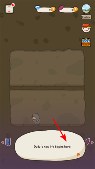 1、进入游戏界面后,点击下方带有橙色三角的区域,开启Dudu的新生活冒险,这是关键操作,才能进入游戏进程。