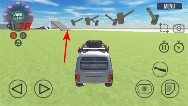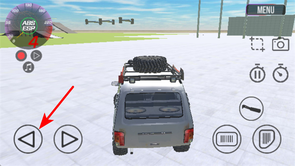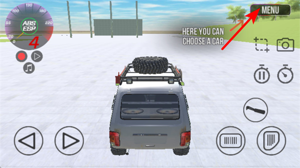 2、在驾驶界面点击MENU按钮,这是切换车辆的基础操作,点击后可打开车辆选择界面,更换适合当前地形的车型,提升驾驶的适配性。