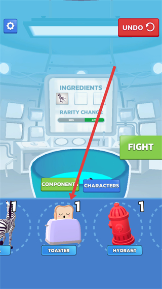 3、尝试不同物品搭配,融合后点击右侧fight按钮。