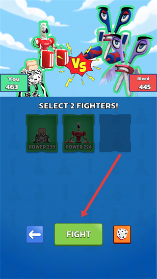 4、在战斗界面选择已融合的物种,点击下方fight。
