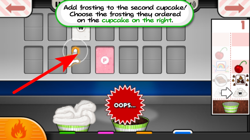 5、根据右侧订单选择对应糖霜,为第二个纸杯蛋糕添加糖霜。