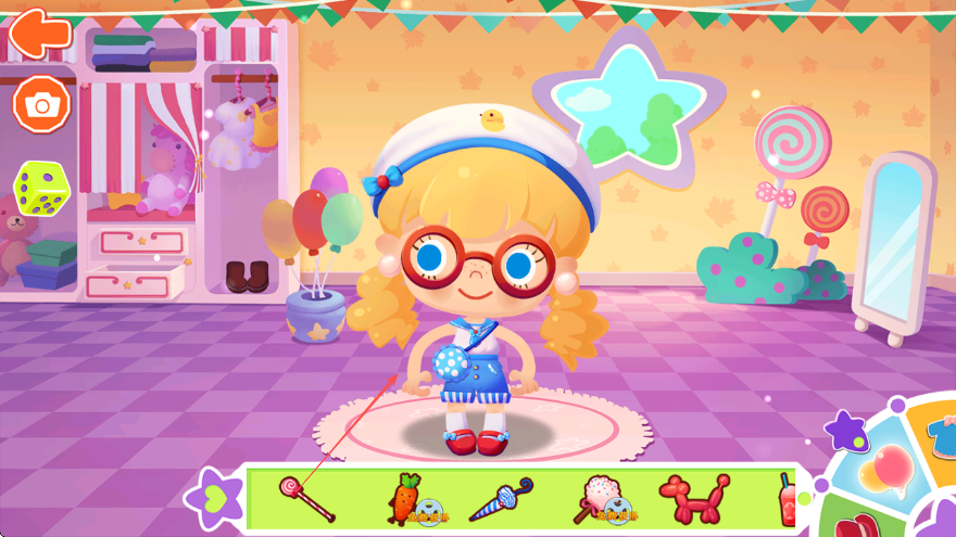 1、进入游戏,看到可爱角色,点击下方装饰栏,选择眼镜类饰品为角色换装。