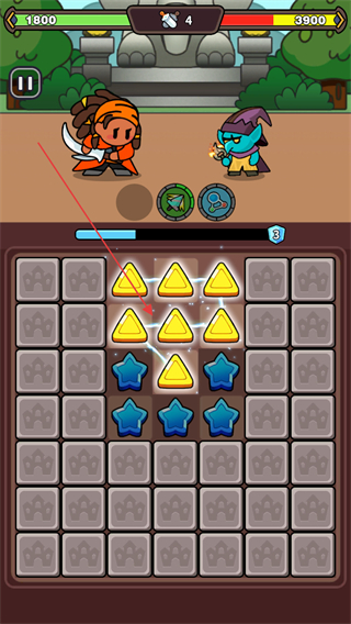 4、消除棋盘上的黄色三角元素,积累能量,准备与新的敌方单位交战。