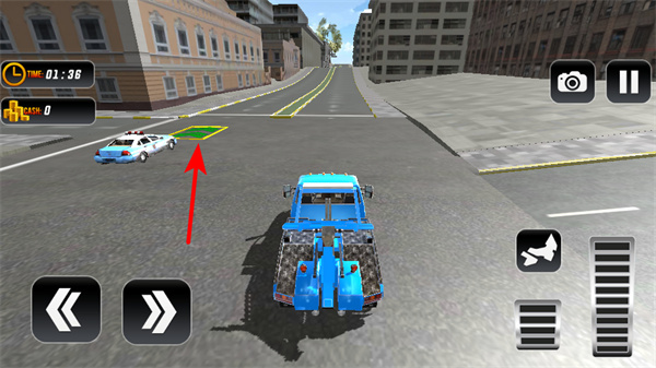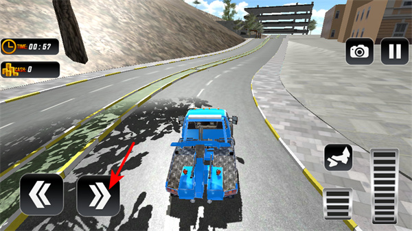 2、游戏中点击右侧方向按钮,可操控拖车转向,在城市道路中灵活调整行驶方向,顺利前往任务地点。